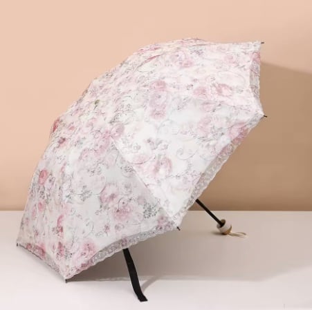 晴雨兼用レース張り折りたたみ傘 ロマンティックピンク