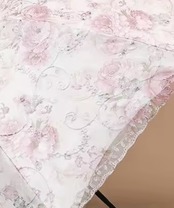 透け感のある花柄とレースがやさしく重なり、
