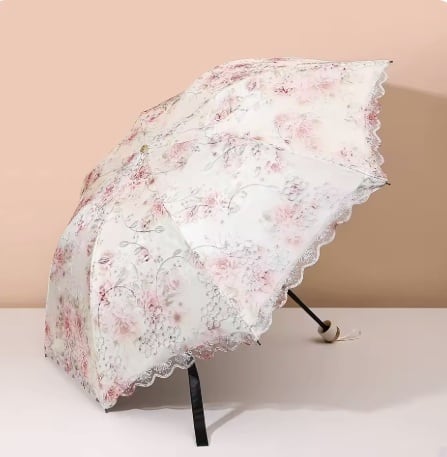 晴雨兼用レース張り折りたたみ傘 ロマンティックピンクパウダー