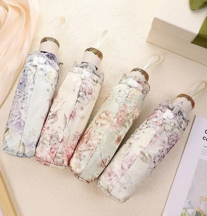 晴雨兼用レース張り折りたたみ傘 ロマンティックブルーパウダー